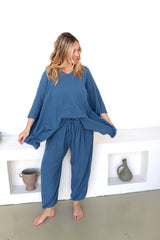 You can match it up with or Wing top or Short Kaftan in blue stone.