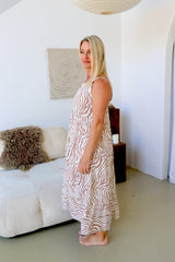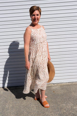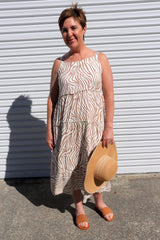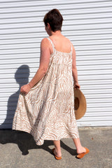 Our Chole Maxi is the ultimate throw-on-and-go dress for every season. The soft zebra taupe print is timeless, and the tiered silhouette makes it both flattering and effortless. With adjustable straps, you can wear it your way – whether on warm sunny days or layered with a denim jacket, scarf and boots as the seasons change.