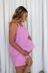 The top features a flattering elasticated bodice (front and back) with soft elasticated straps, while the matching shorts come with a drawstring waist and practical pockets. Finished with our delicate RO signature embroidery, this set feels both luxurious and sooooo cute!