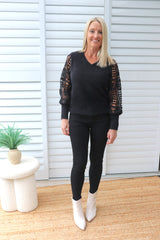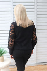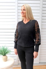 Every wardrobe needs a Lux puffy knit sweater with stunning long crochet sleeves.