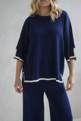 The top features a crew neck, drop shoulder and split hems all being timeless & versatile with a modern relaxed vibe.
