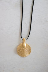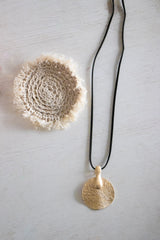 Compliment any outfit with our Gold Circle Pendant with a faux leather necklace.