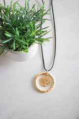 A perfect Gold Tree of Life pendant with a faux leather necklace.