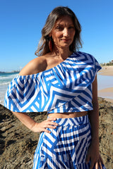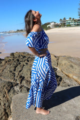 Transport yourself to the Mediterranean in the Greek Isle Set—a show-stopping two-piece made for resort escapes and balmy evenings. Crafted from soft, breathable rayon, this set features an eye-catching mix of Greek blue and white stripes flowing in every direction for a truly striking look.