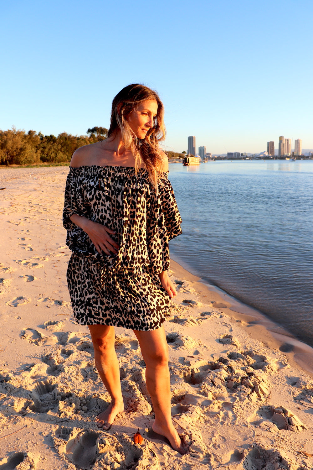 Our Holiday Dreaming is designed for on or off the shoulders, you can wear it as a Dress or a Top with pants. Elasticated at the top of the bodice so you can where it up or down and an adjustable tie up waist to make it longer or shorter.