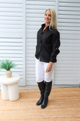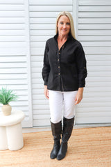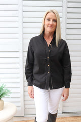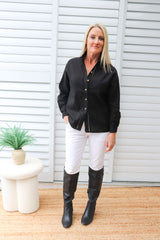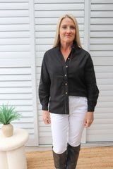 Wear it buttoned up, classic one side tucked in or left open with a plain Tee underneath. It looks fabulous with our 7/8 Cargo Jeans & long boots.