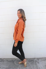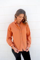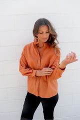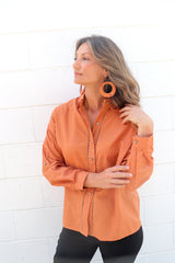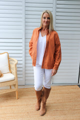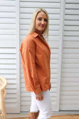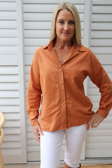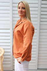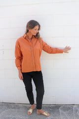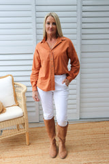 Wear it buttoned up, classic one side tucked in or left open with a plain Tee underneath. It looks fabulous with our 7/8 Cargo Jeans & long boots.