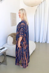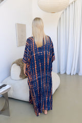 Our Long Kaftan in Choc Navy Tie Dye is your go-to piece for relaxed, effortless style. Made from cool, breathable rayon, it flows beautifully and feels light on the skin—perfect for warm days, holidays, or simply lounging in comfort. The striking tie dye print adds a bold yet timeless touch, while the flattering V-neckline elevates the look.