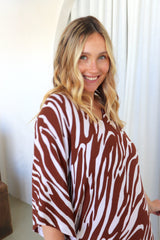 Our Long Kaftan in Choc Wave is your go-to piece for relaxed, effortless style. Made from cool, breathable rayon, it flows beautifully and feels light on the skin—perfect for warm days, holidays, or simply lounging in comfort. The striking choc wave print adds a bold yet timeless touch, while the flattering V-neckline elevates the look.