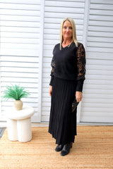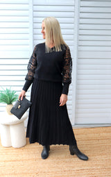 Freshen up your wardrobe with this classic Knit Pleated Maxi Skirt.