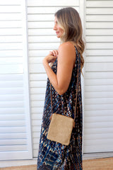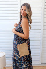 Cute little Boho Faux Leather strap & Raffia outside. Enough room for all your girly goodies on girls night or day out! Can house the largest mobile phone ( see pic)