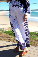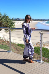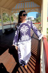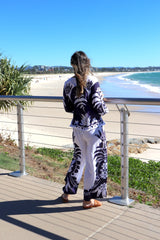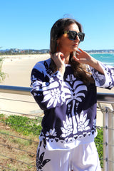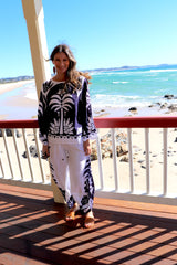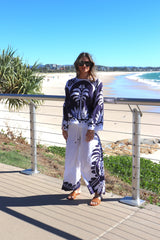 Step into summer style with the Palms Navy Set—a chic matching duo designed to take you from beachside brunches to sunset cocktails in total comfort. Crafted from a light, breathable viscose fabric, this set features a striking navy palm print on a crisp white base, bringing a timeless resort feel with a modern edge.