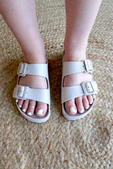 Comfort meets sleek. Super soft flex sole featuring a double buckle closure. • IP injected EVA moulding • Double buckle closure with adjustable width • EVA upper • Designed in Australia • Made in Vietnam