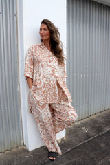 Introducing our Sahara Set being a Short Sleeve Collar Top and Relaxed Pant Set – the ultimate blend of comfort and style!