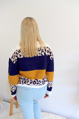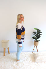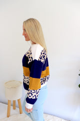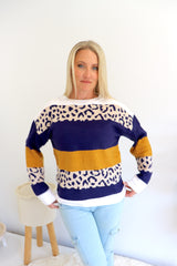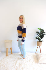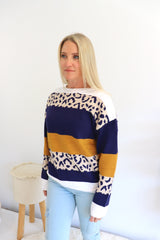 Say hello to your new statement knit – the Serengeti Sweater in our striking navy animal print.