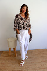 It's perfect for the beach or you can dress it up as a gorgeous flowy top over our Harem pants to wear to any occasion!