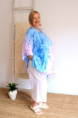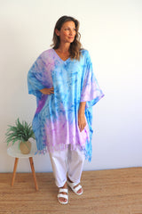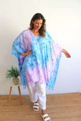 Our Short Kaftan with Tassels—the ultimate wardrobe essential that effortlessly transitions from a laid-back day at home to a stylish escape on your dream island getaway or perfect cruise. This versatile piece works beautifully on the beach or as a chic, flowy top when paired with our Dream Pants for any occasion.