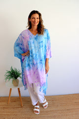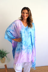 Our devoted Rock Olive fans rave about the luxurious feel of our soft, cool rayon fabric, which drapes gracefully over your skin. Designed with a flattering V-neck and accented by a tasselled hem that exudes relaxed, holiday vibes, this kaftan promises both comfort and style wherever life takes you.