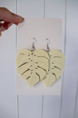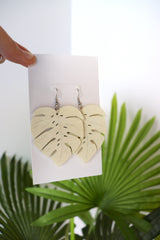 Wood Leaf Boho Earrings in Cream