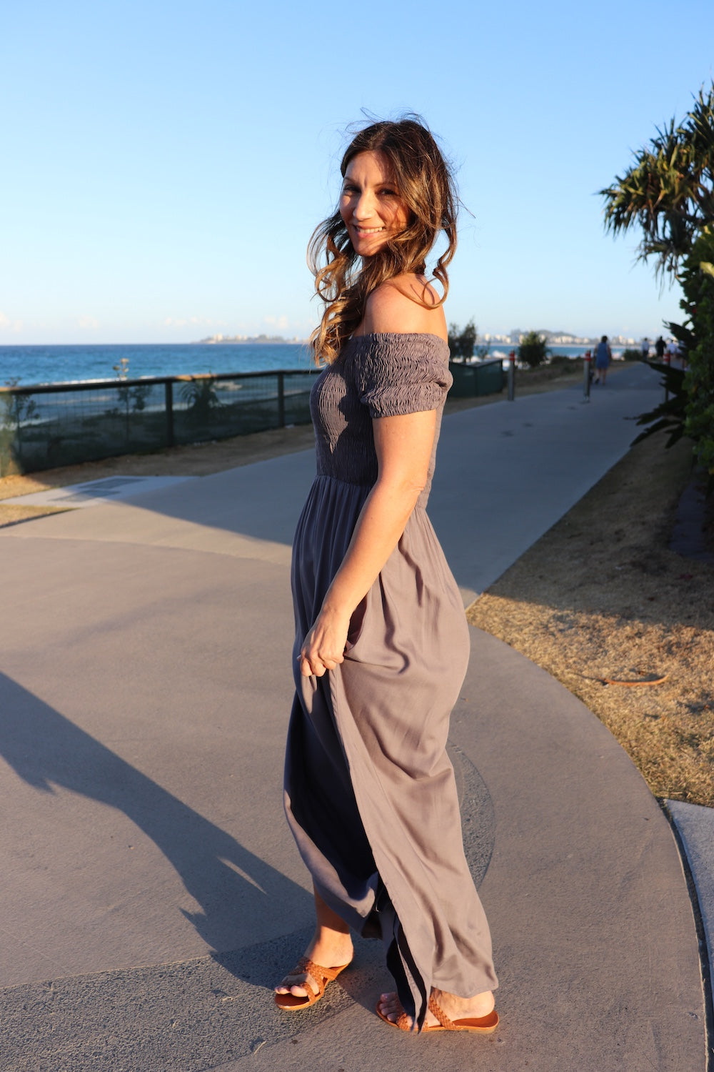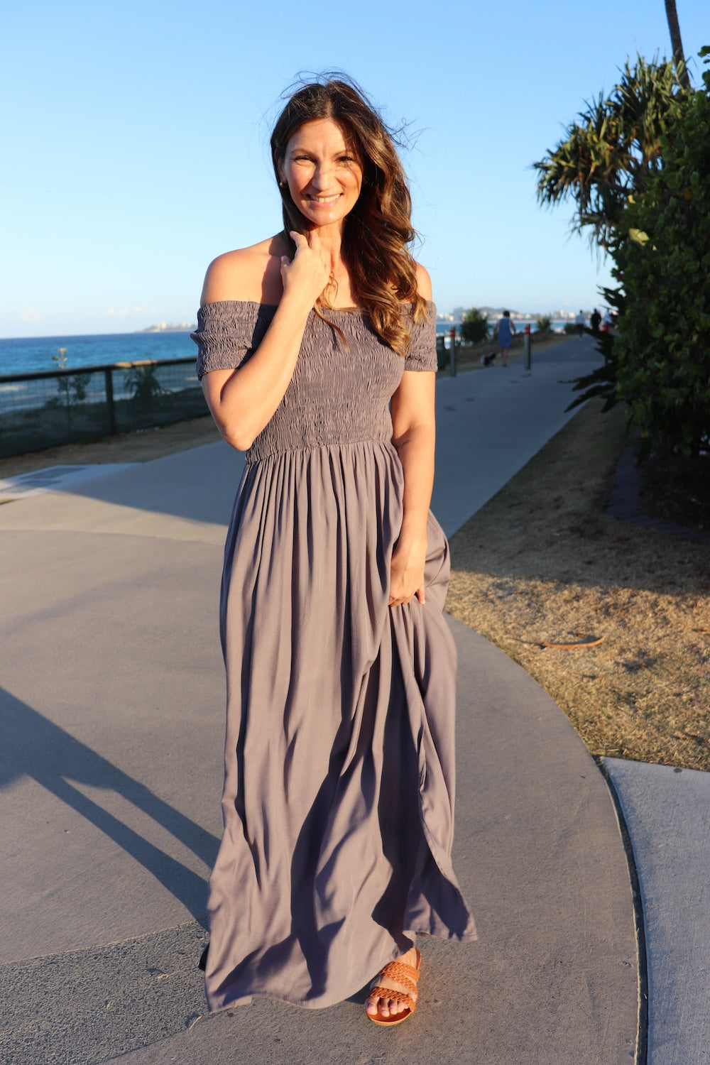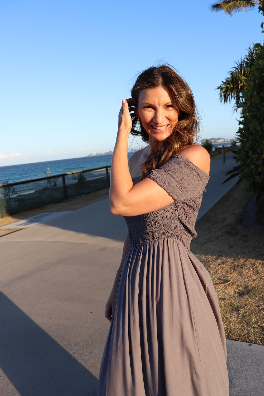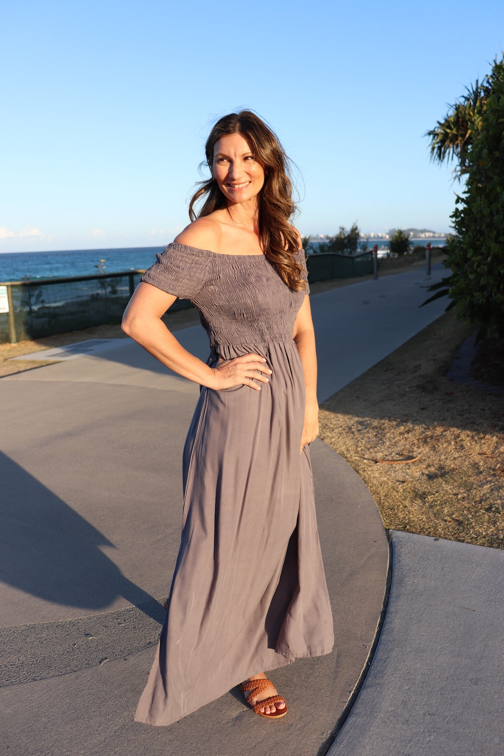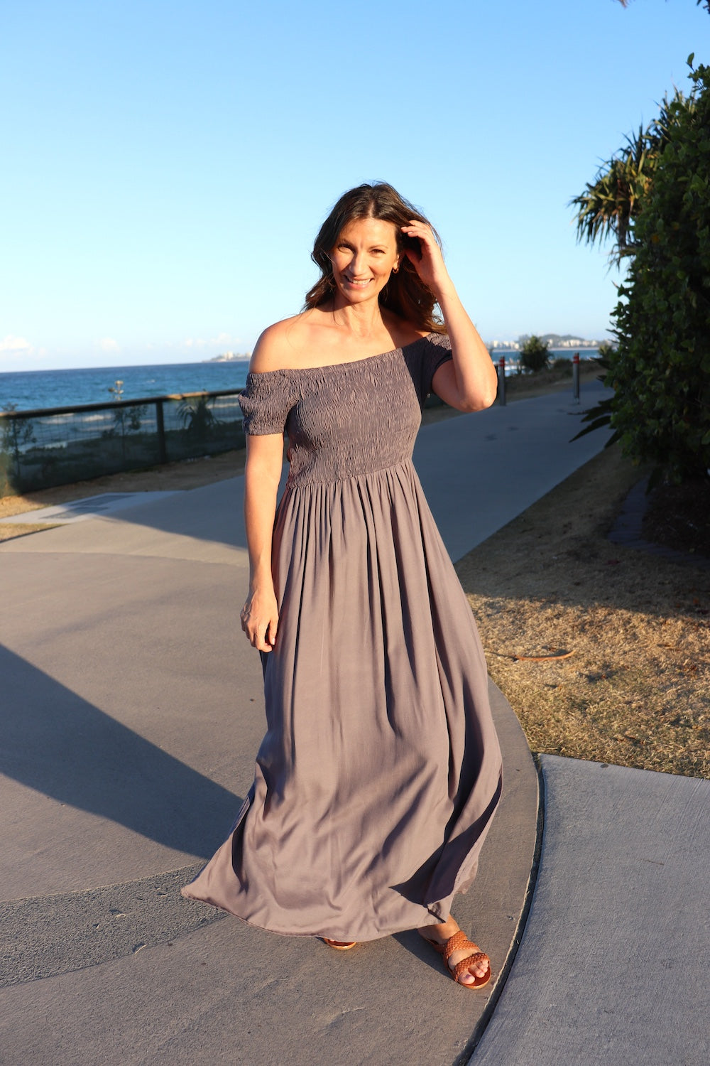 The one-size elasticised bodice is designed to flatter and can be worn on or off the shoulders for versatile styling. Flowing full in length with two chic side splits, it’s both elegant and easy to wear.