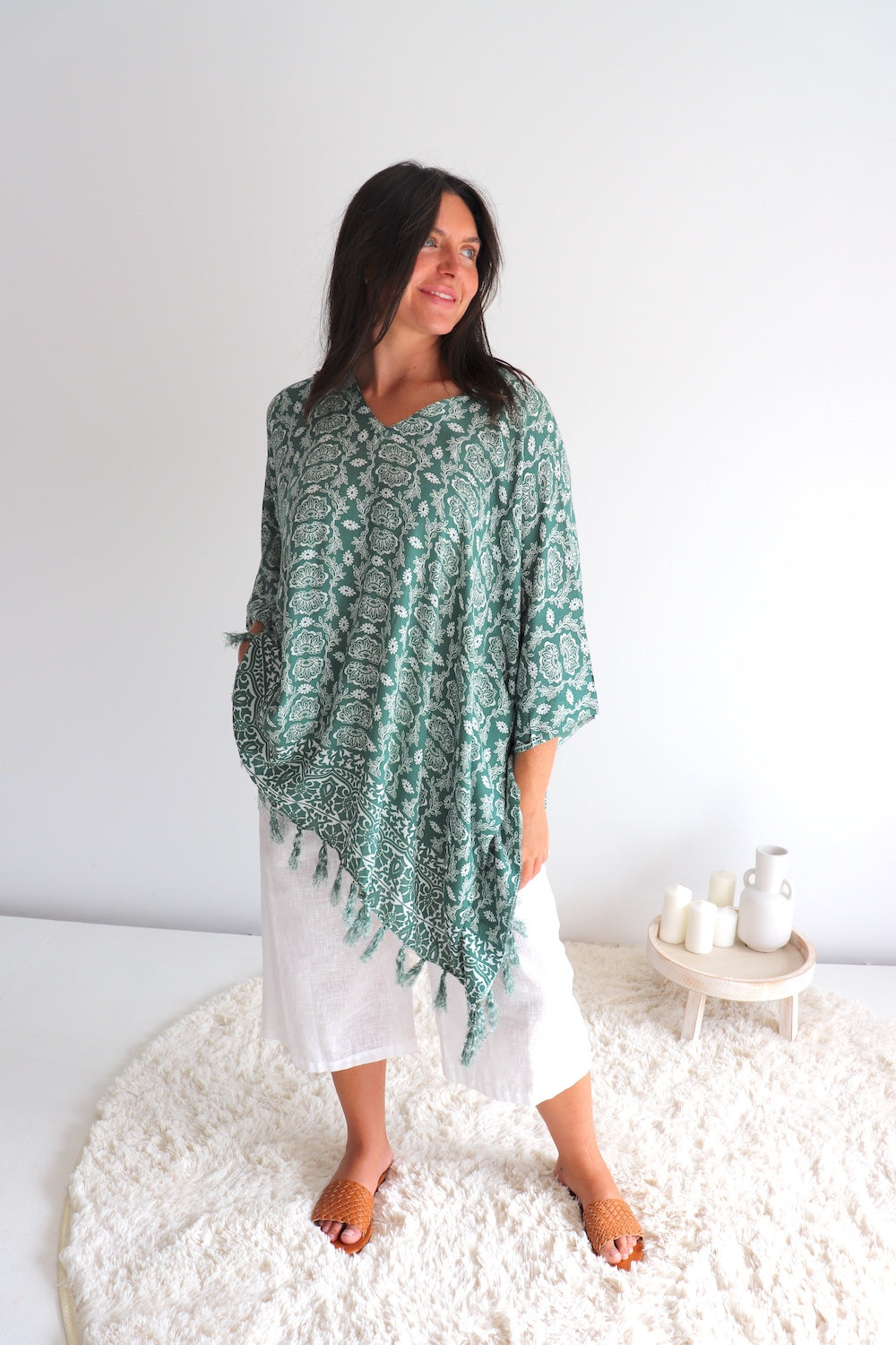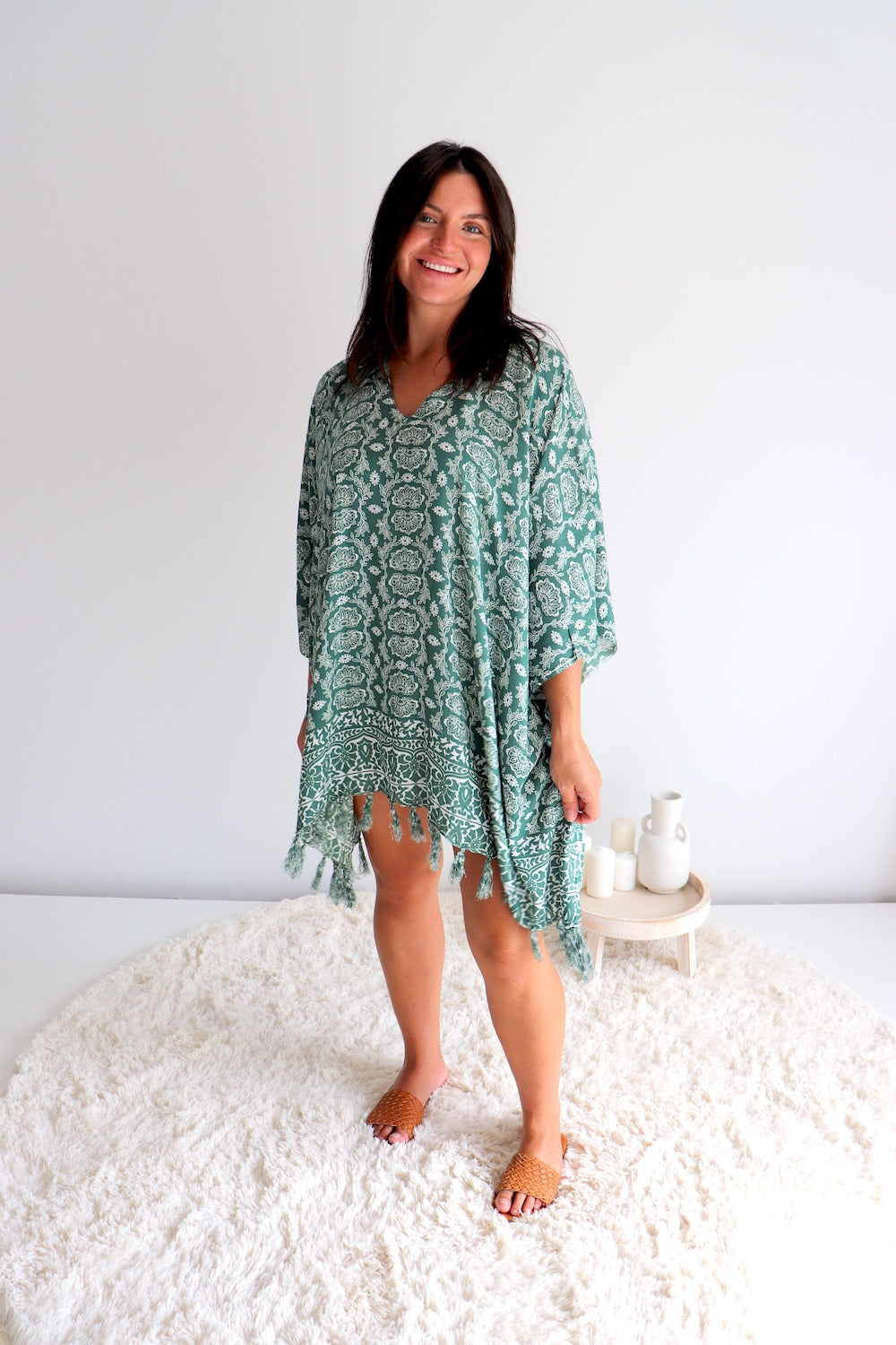 Featuring a flattering V-neck and a playful tasselled bottom, this kaftan exudes that relaxed holiday vibe, wherever you go.