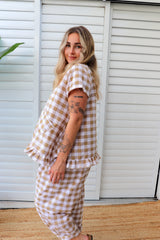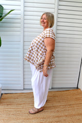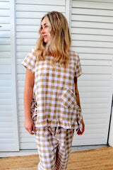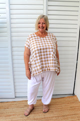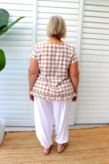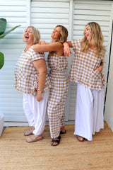 Looks gorgeous with our Harem, Caribbean or Dream Pants! Match it up with the Latte Gingham Dream Pant!