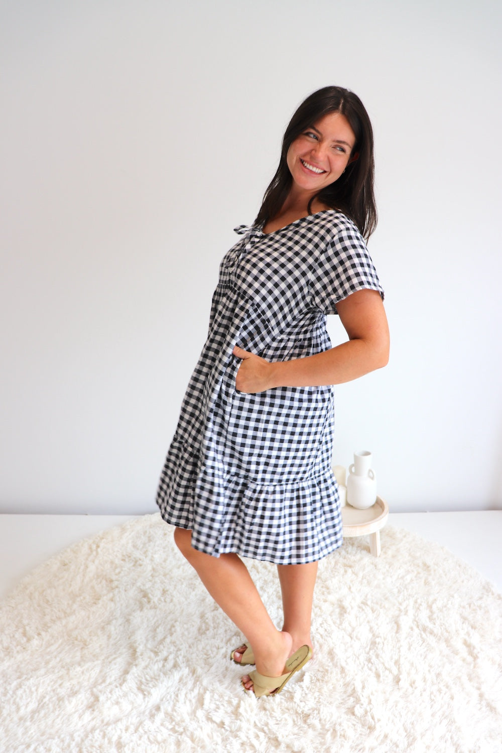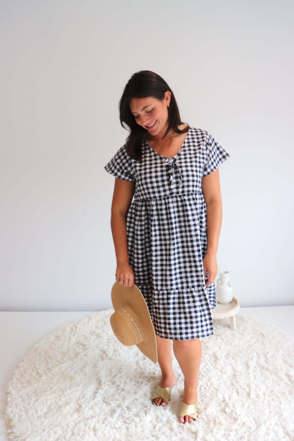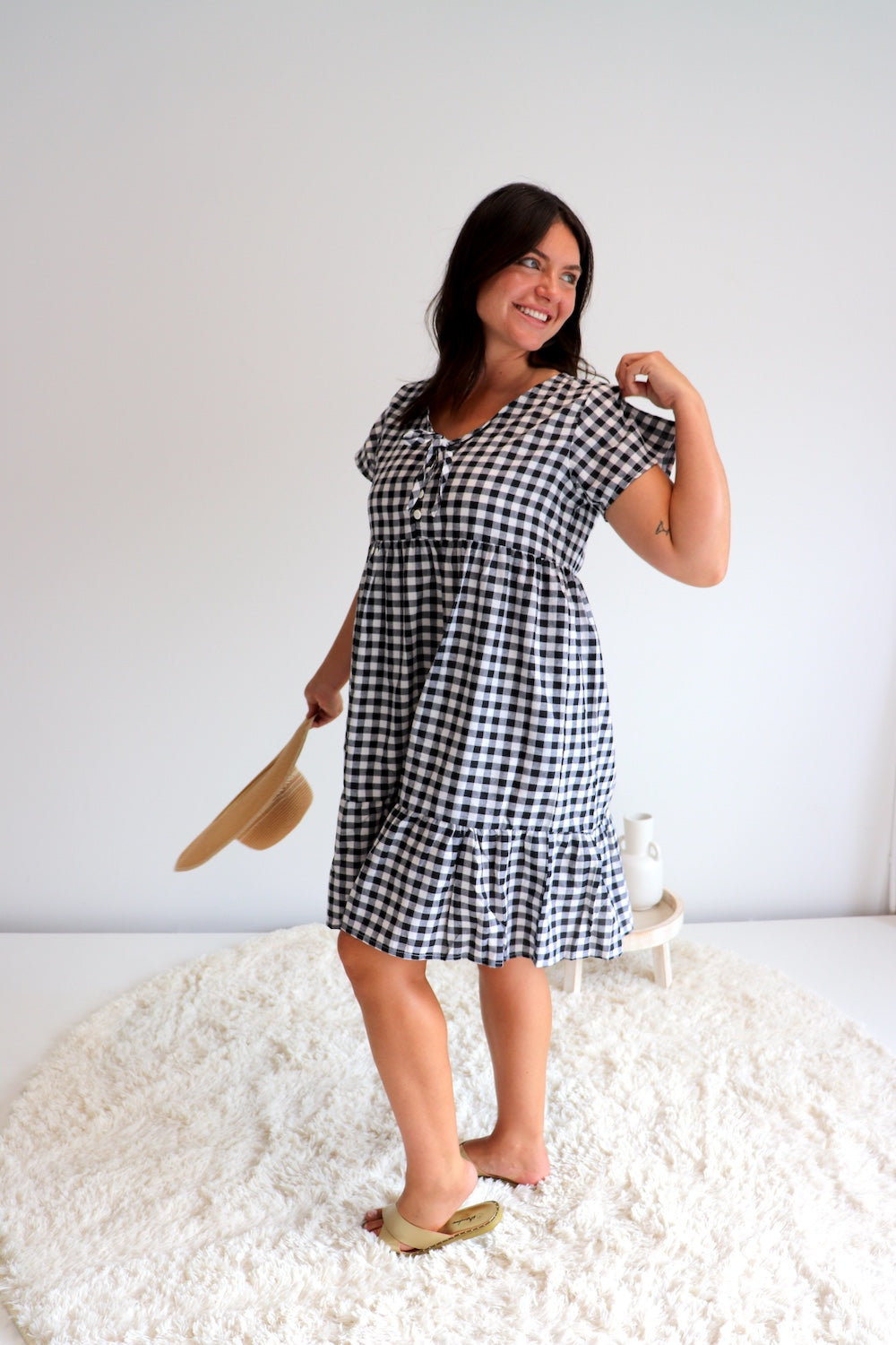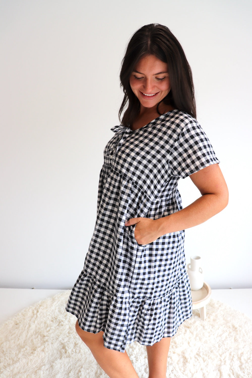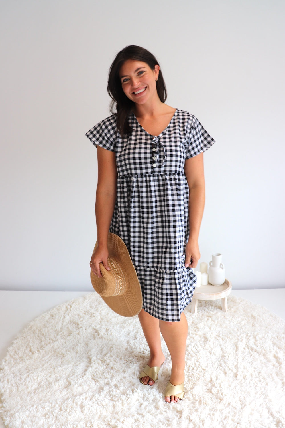 We are so excited to introduce our Baby Doll Button-up Dress in COTTON GINGHAM Black & White!