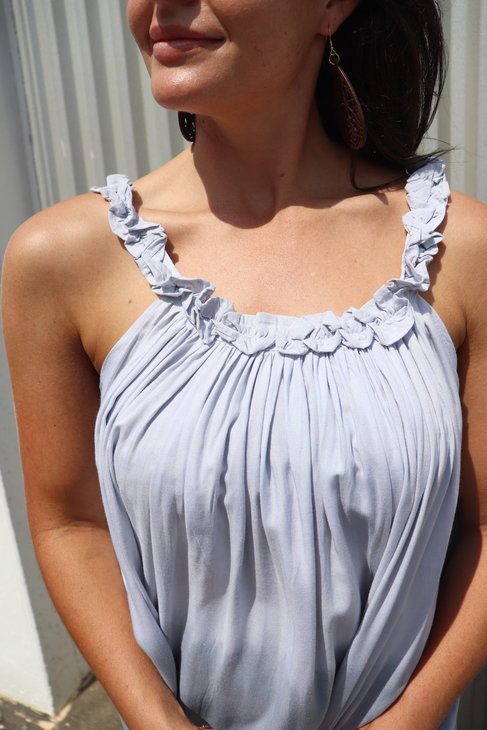 Featuring super soft with our high grade cool tie dye rayon fabric, gorgeous frilled neckline and straps. The models are wearing a boob tube underneath.