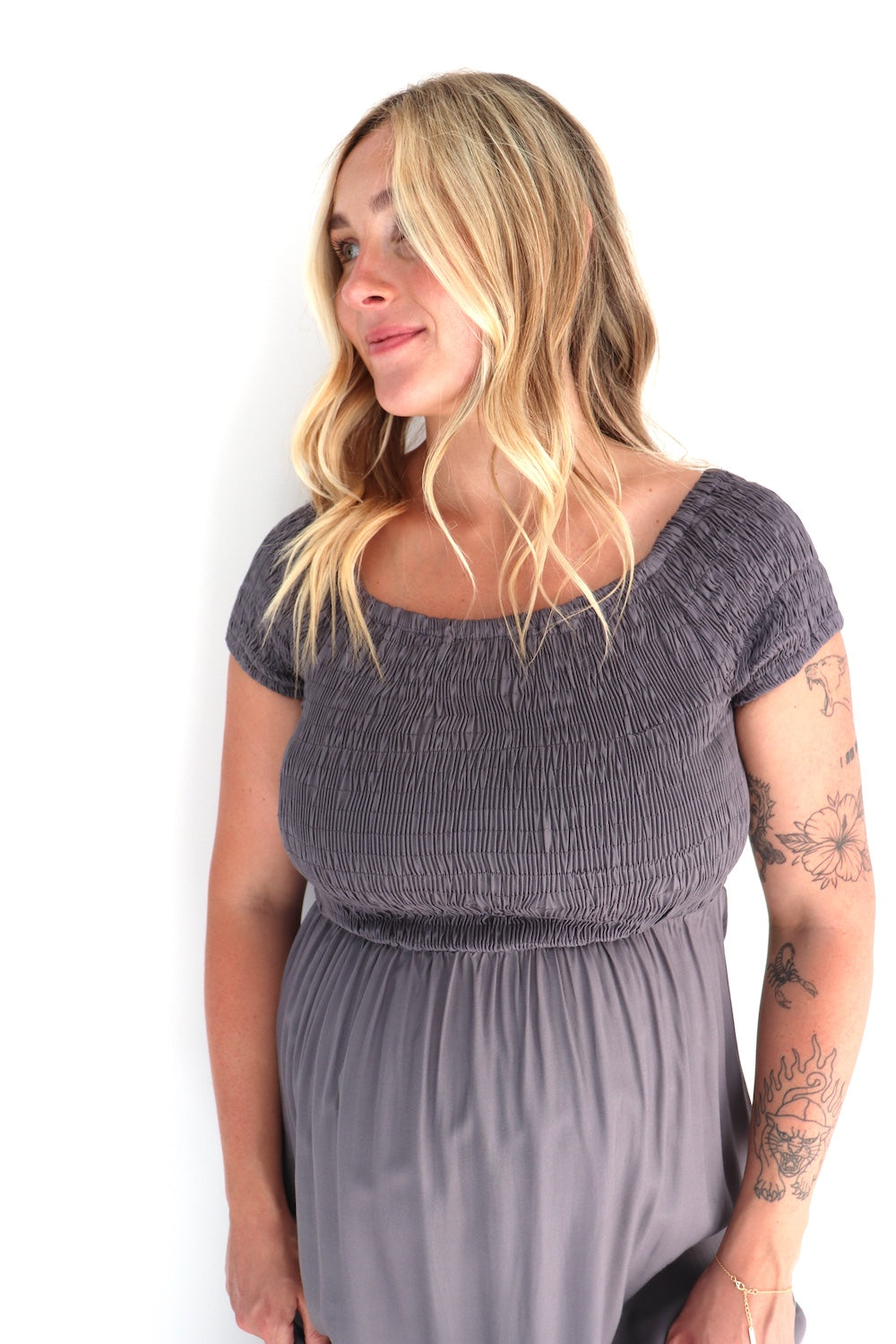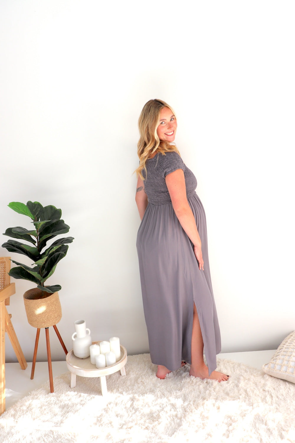 Whether you’re dressing it up for an event, styling it casually for every day, or embracing it as a gorgeous maternity-friendly piece (just like Madi, 8 months pregnant and glowing), this dress is made to move with you through every season of life.