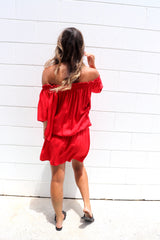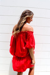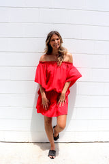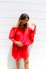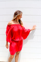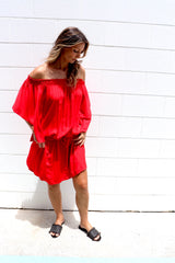 You can wear it on or off the shoulders, you can wear it as a Dress or a Top with pants. It has a built in elastic waist and tie.
