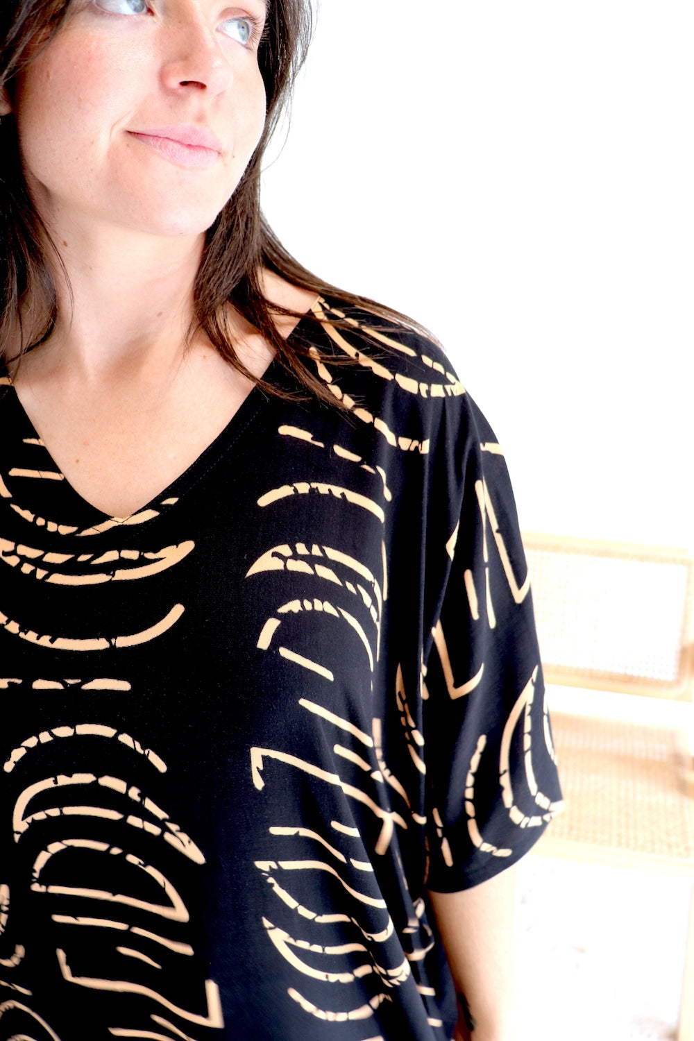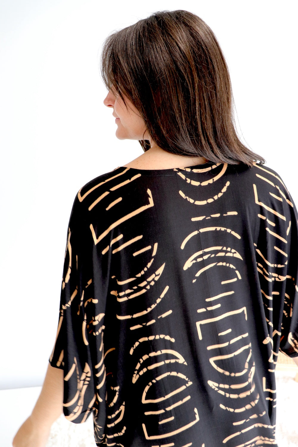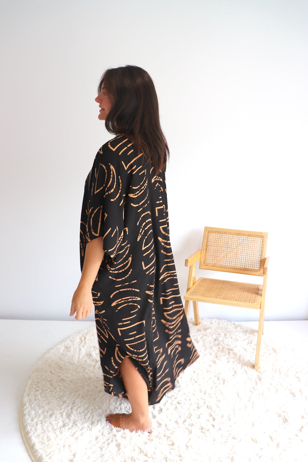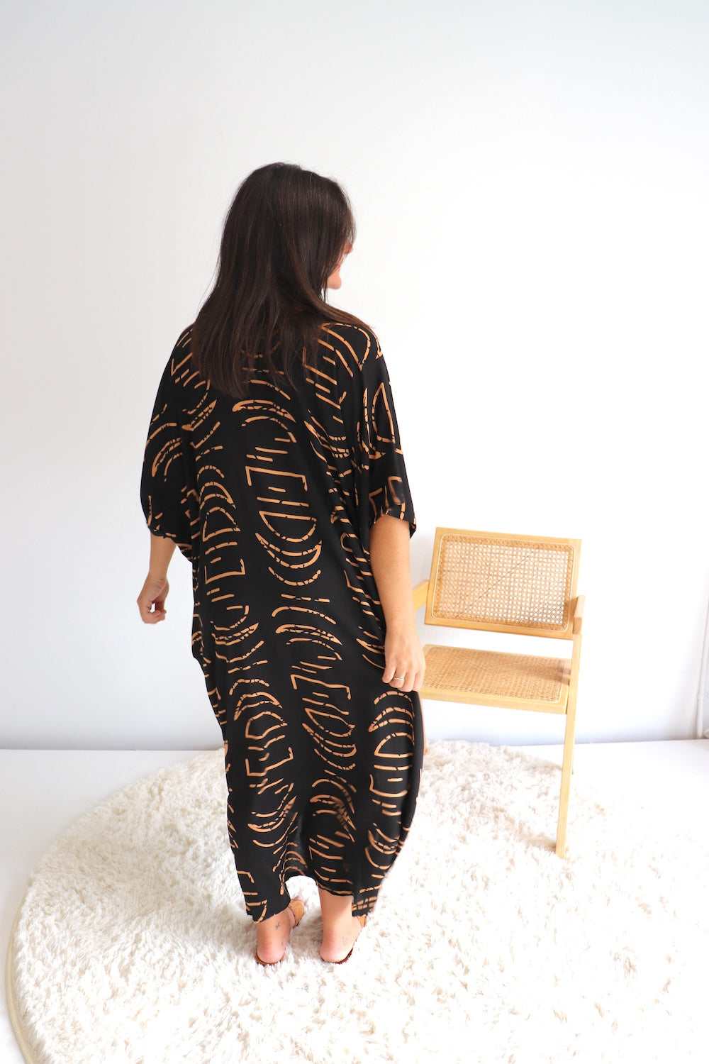 Crafted from our cool, soft, high-quality rayon, this kaftan feels light and airy against the skin—perfect for warm climates and holiday living. The flattering V neckline and side splits create movement and flow, giving it that unmistakable resort elegance.