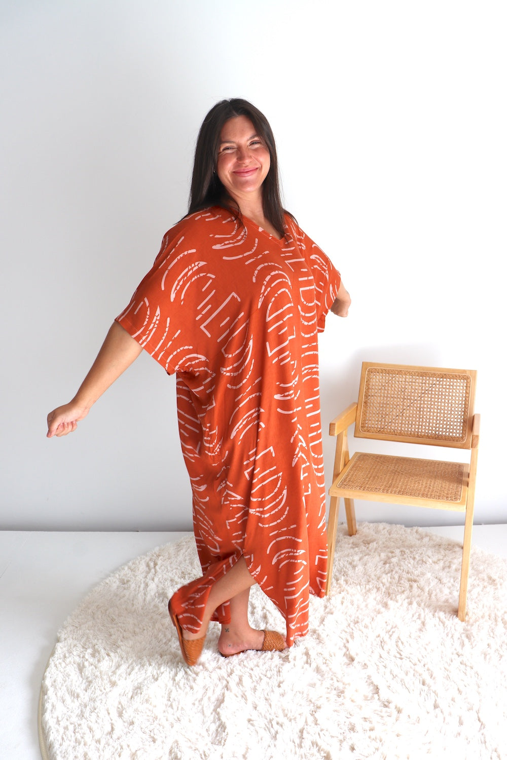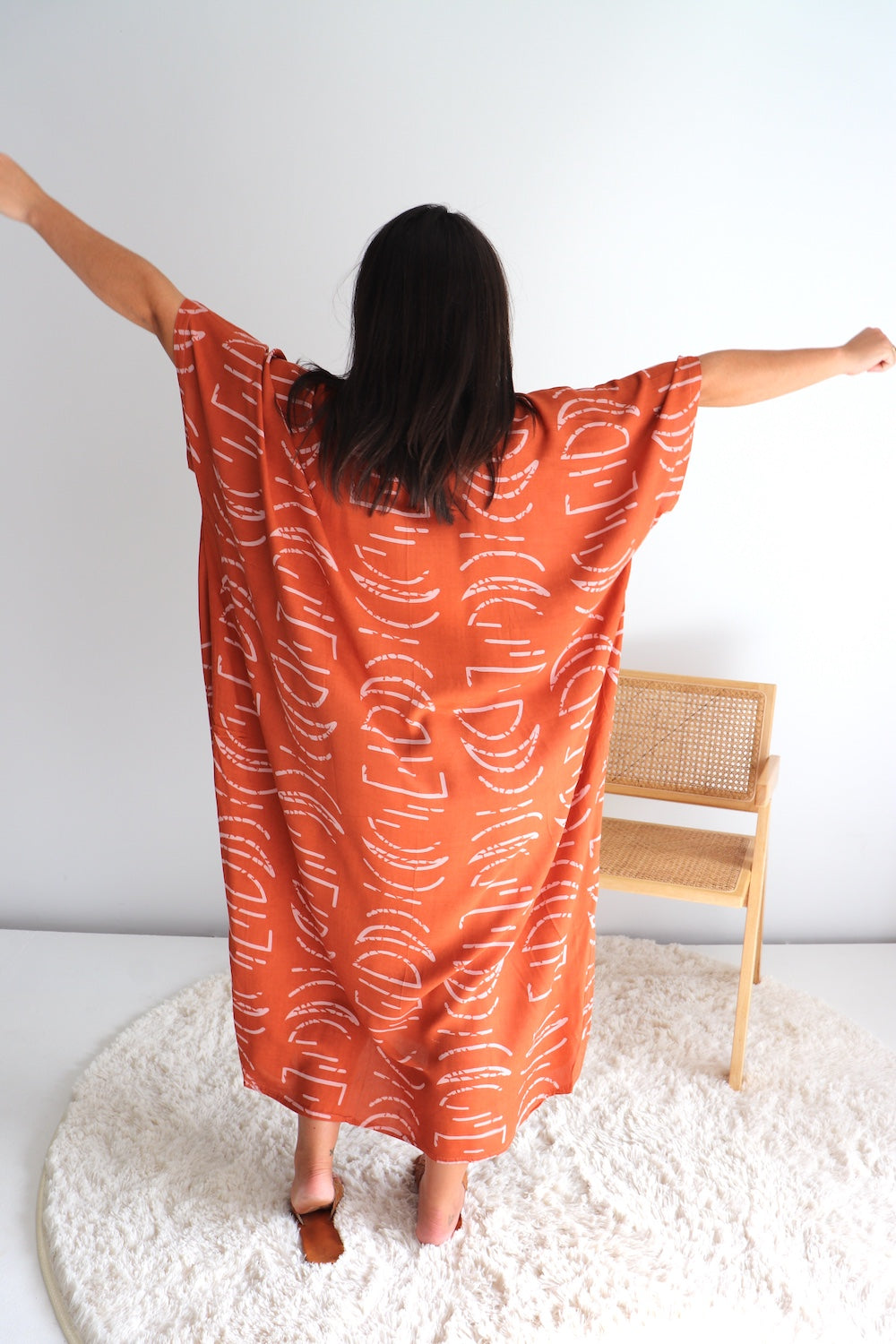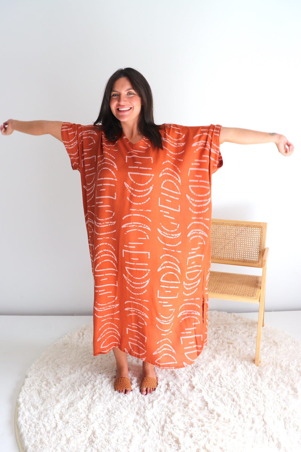 Float through warm days in this effortlessly chic long kaftan, designed to flatter sizes 8–26 with a relaxed, flowing fit. Made from our cool, soft high-quality rayon, it drapes beautifully and keeps you comfortable in the heat.