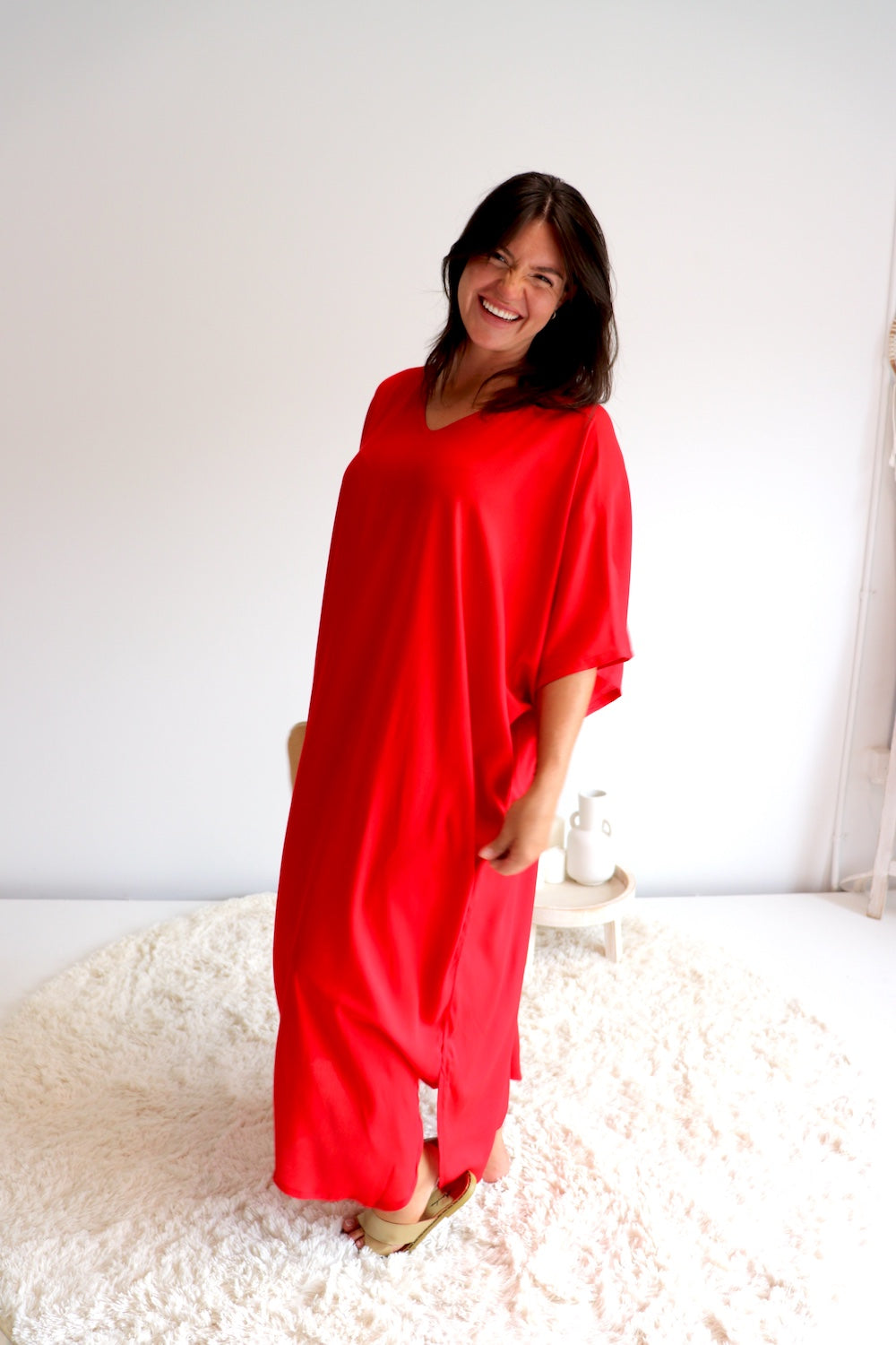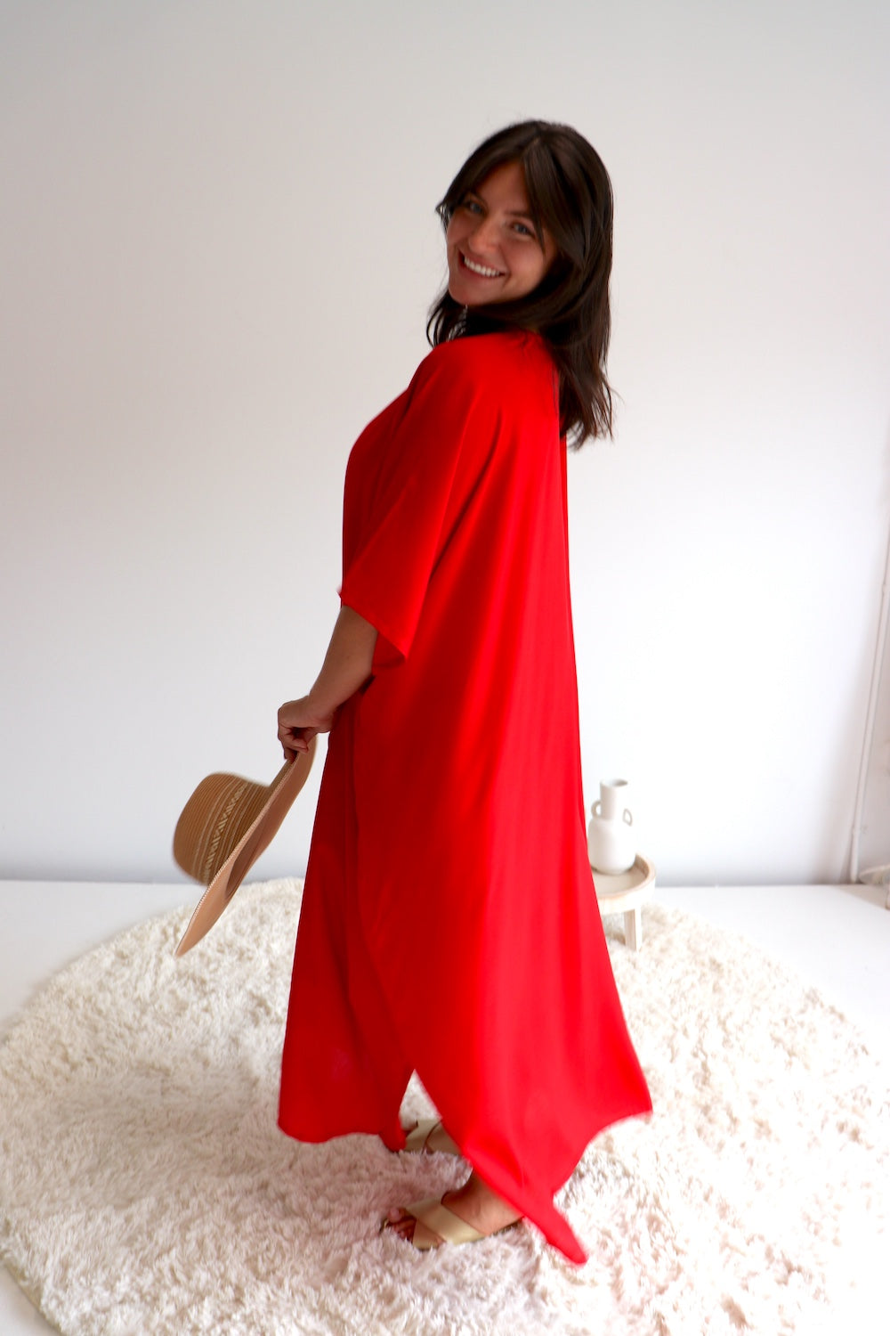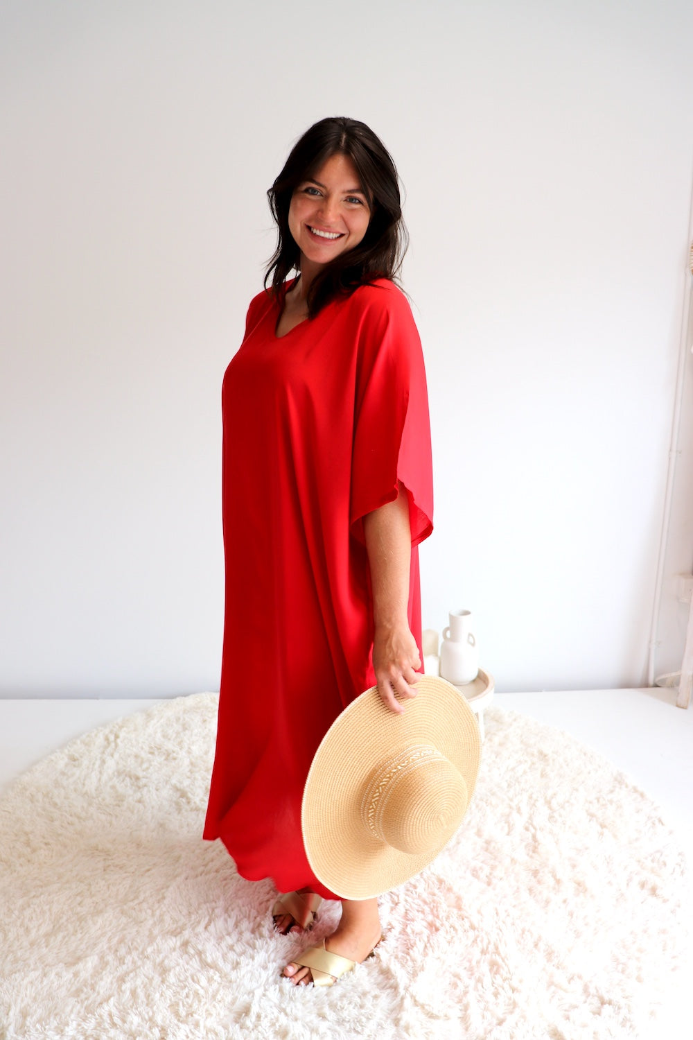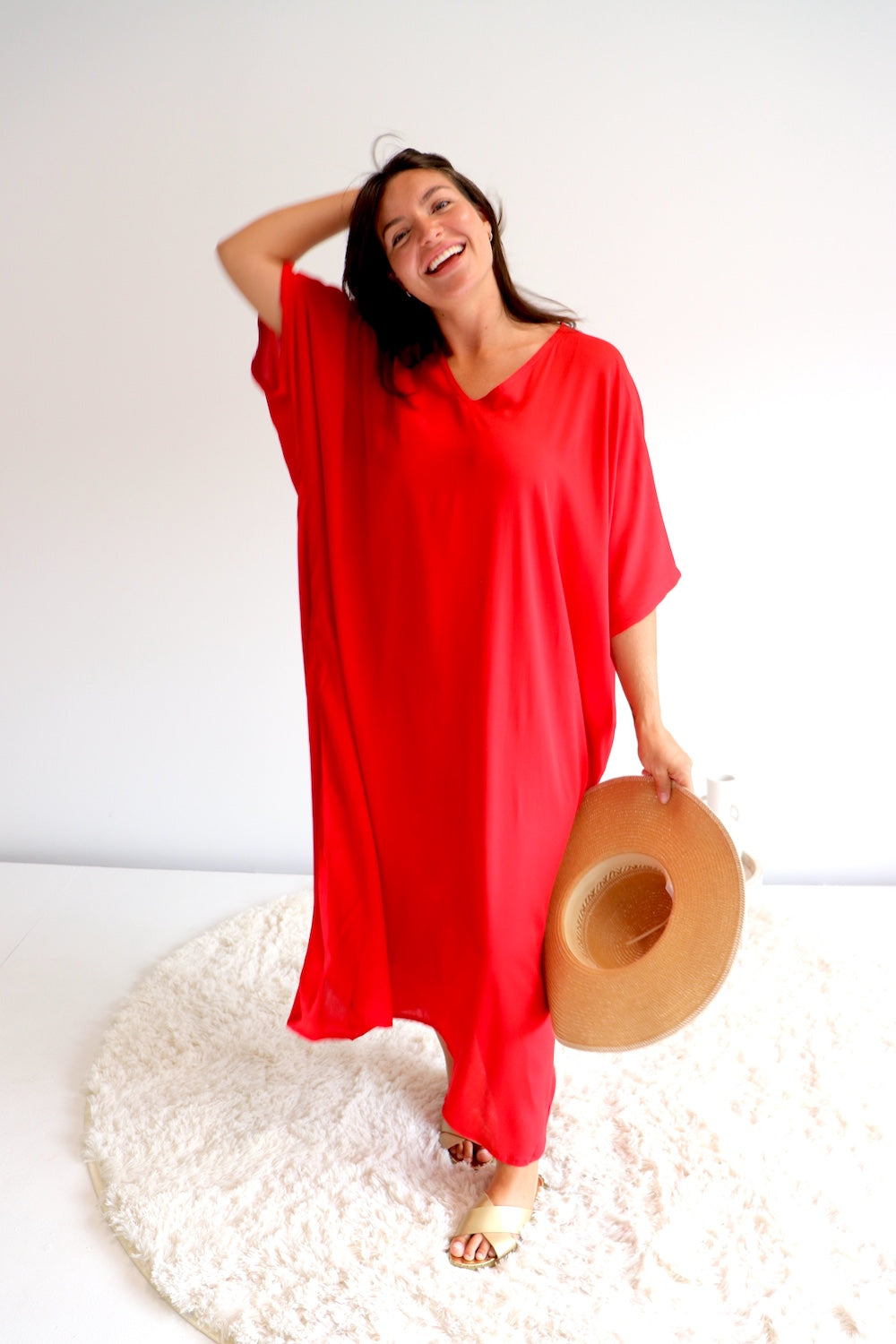 This stunning long kaftan is designed to fit beautifully on sizes 8–26, offering an elegant, relaxed silhouette that flatters every body shape. Made from our cool, soft, high quality rayon, it drapes effortlessly and keeps you comfortable on warm days.