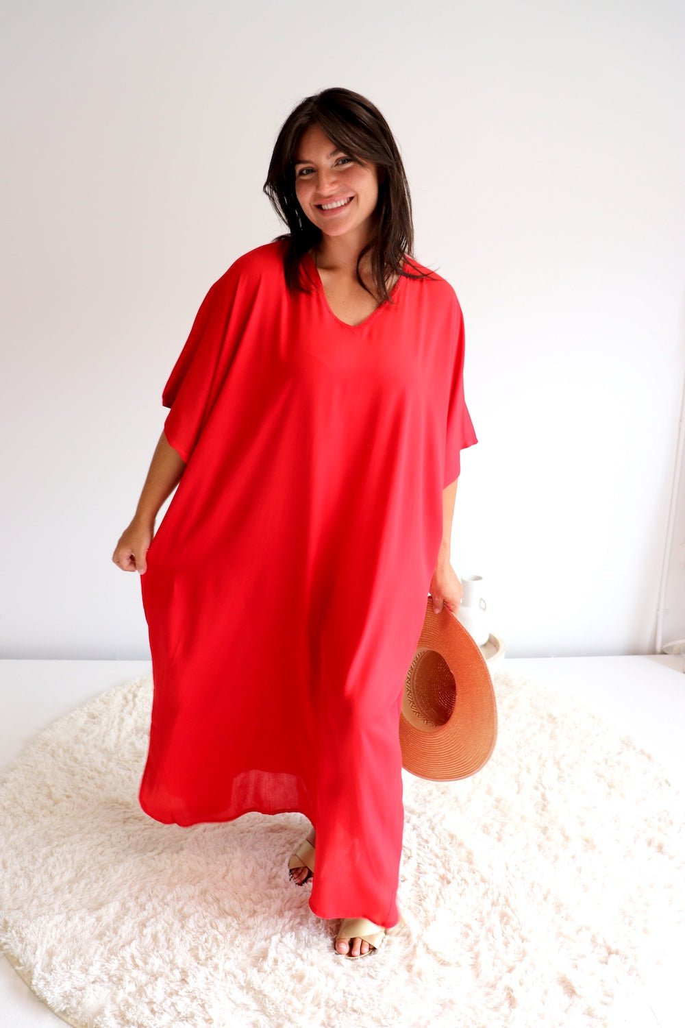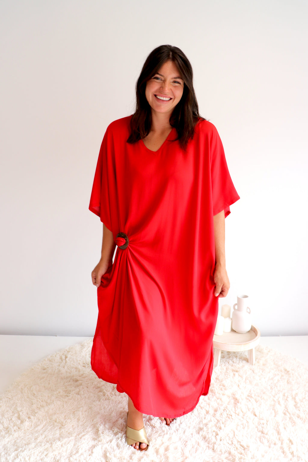 Featuring a flattering V neckline and side splits, this kaftan allows for easy movement and a breezy, flowing feel. Wear it loose for a relaxed resort vibe or style it with one of our coconut sarong clips to create definition and shape at the waist. Perfect for home, beach days or as a standout resort piece, this kaftan is all about comfort, confidence and effortless style.