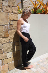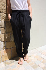 Classy and super cool are these rayon fabric pants. Featuring an elastic waist and pockets for great comfort.