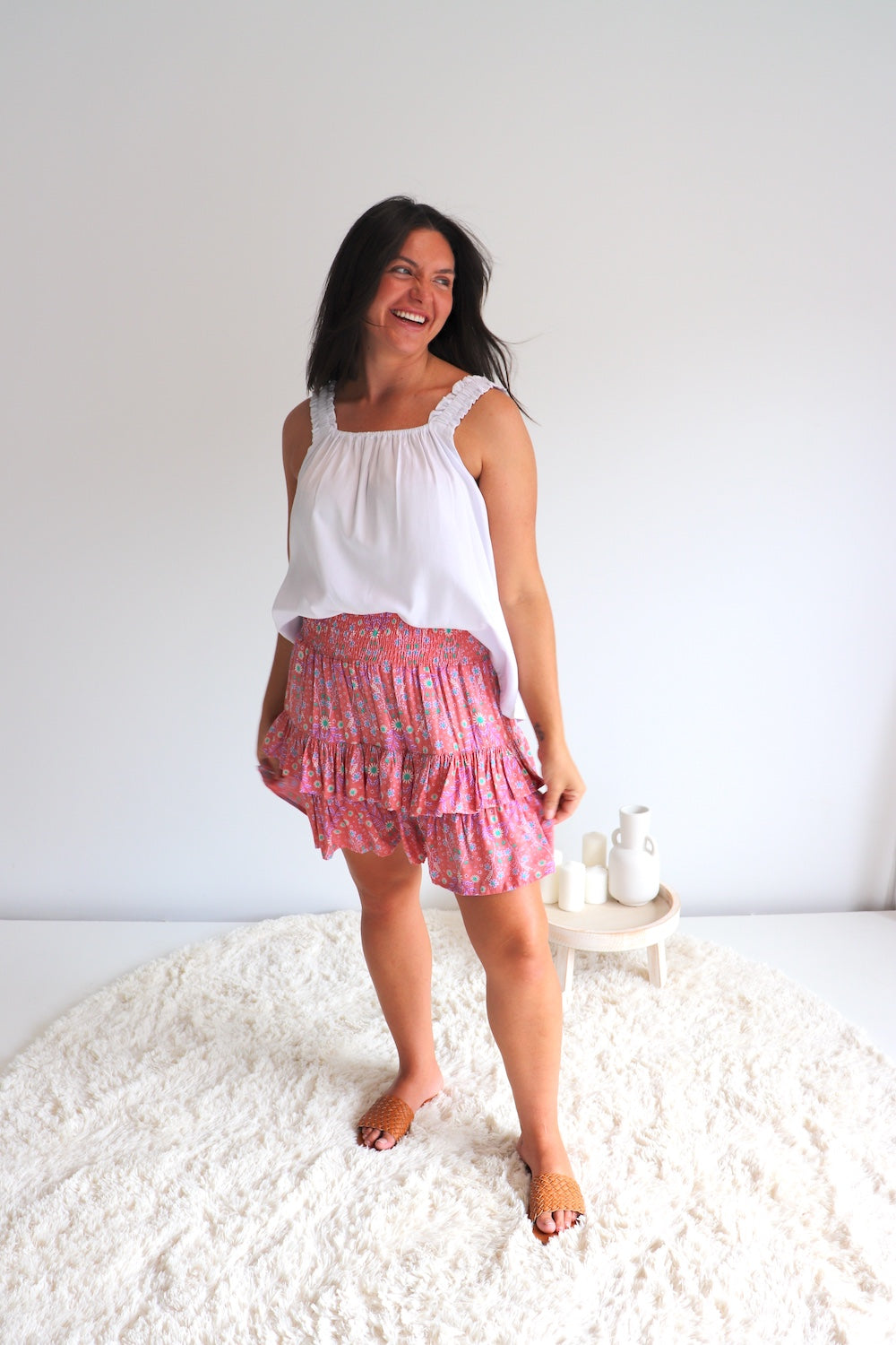 Super fun and effortless to wear, this gorgeous short skirt (42cm length) is a must-have for holidays and everyday styling.