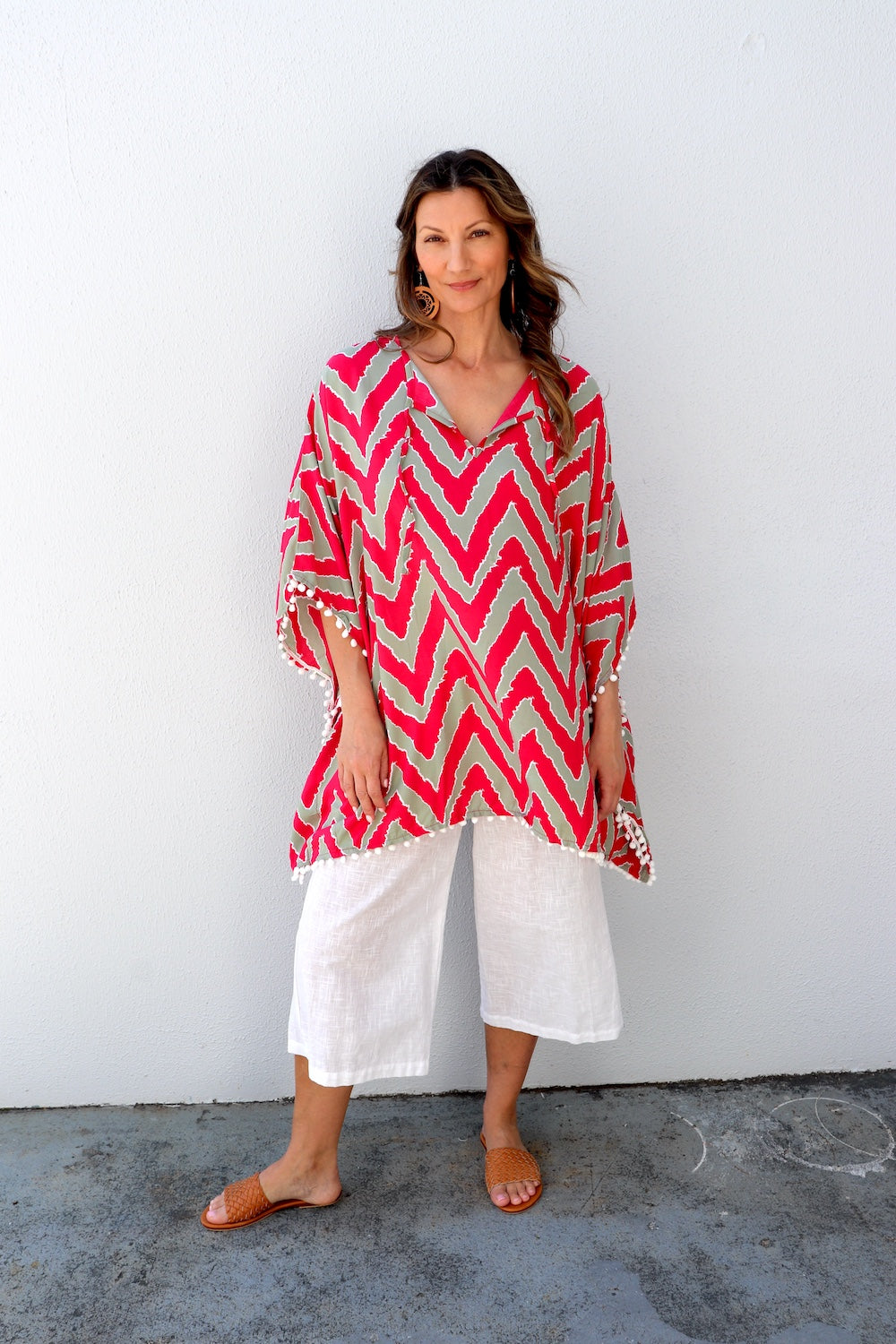 Discover the ultimate in easy, relaxed dressing with this beautifully designed short kaftan. Made from ultra-soft, lightweight rayon, it keeps you cool, comfortable, and stylish from morning to night.