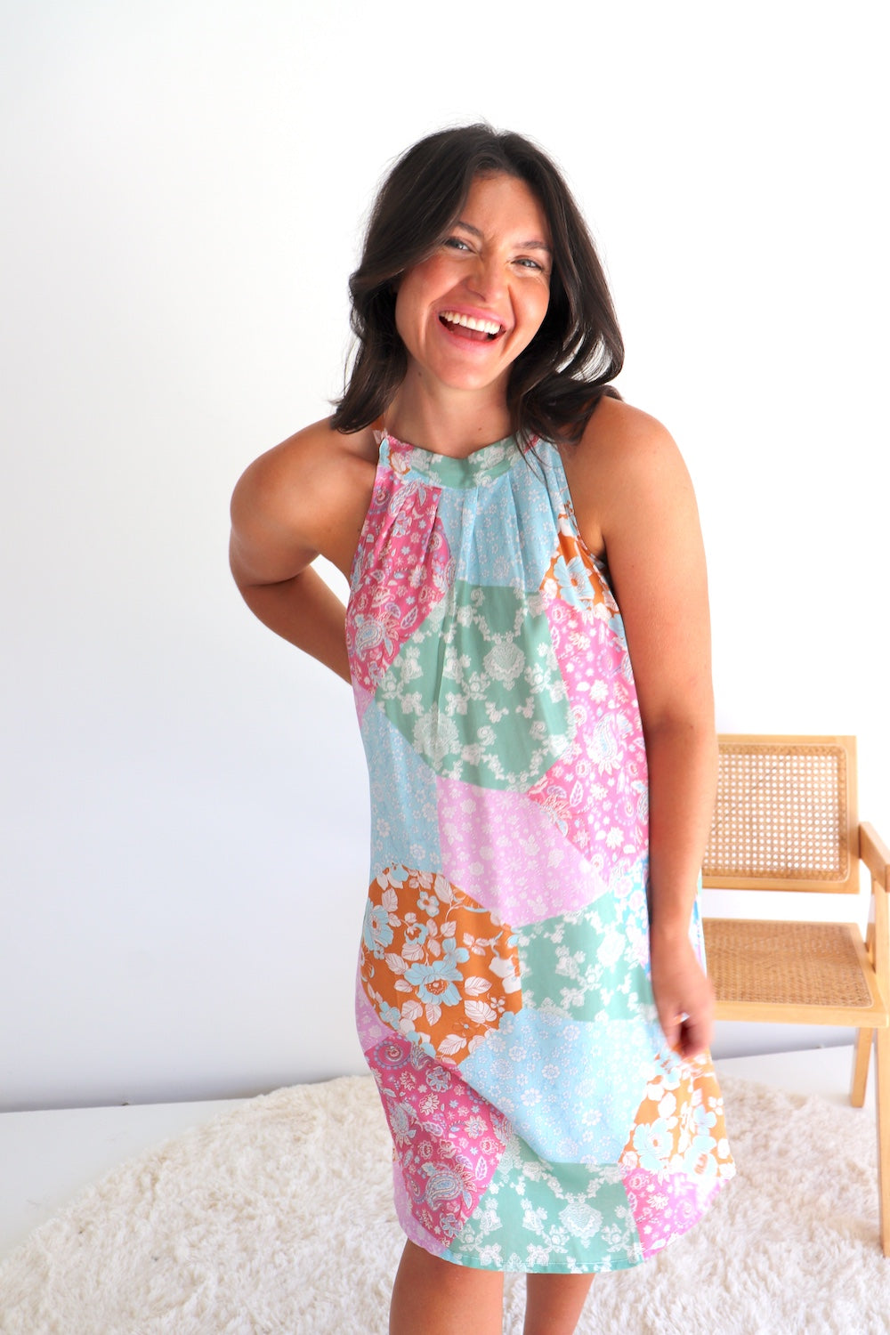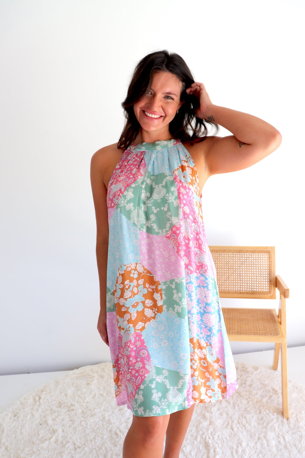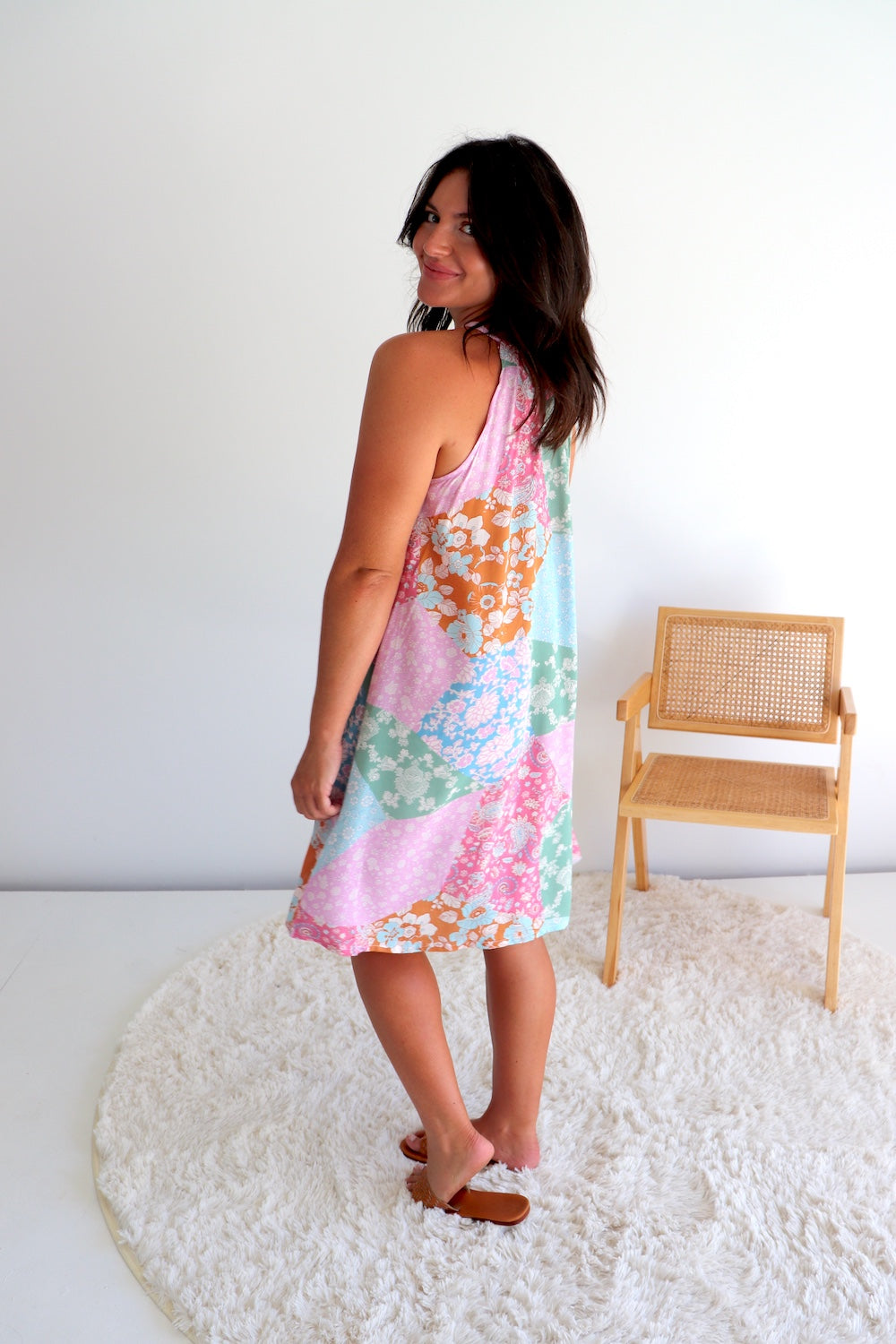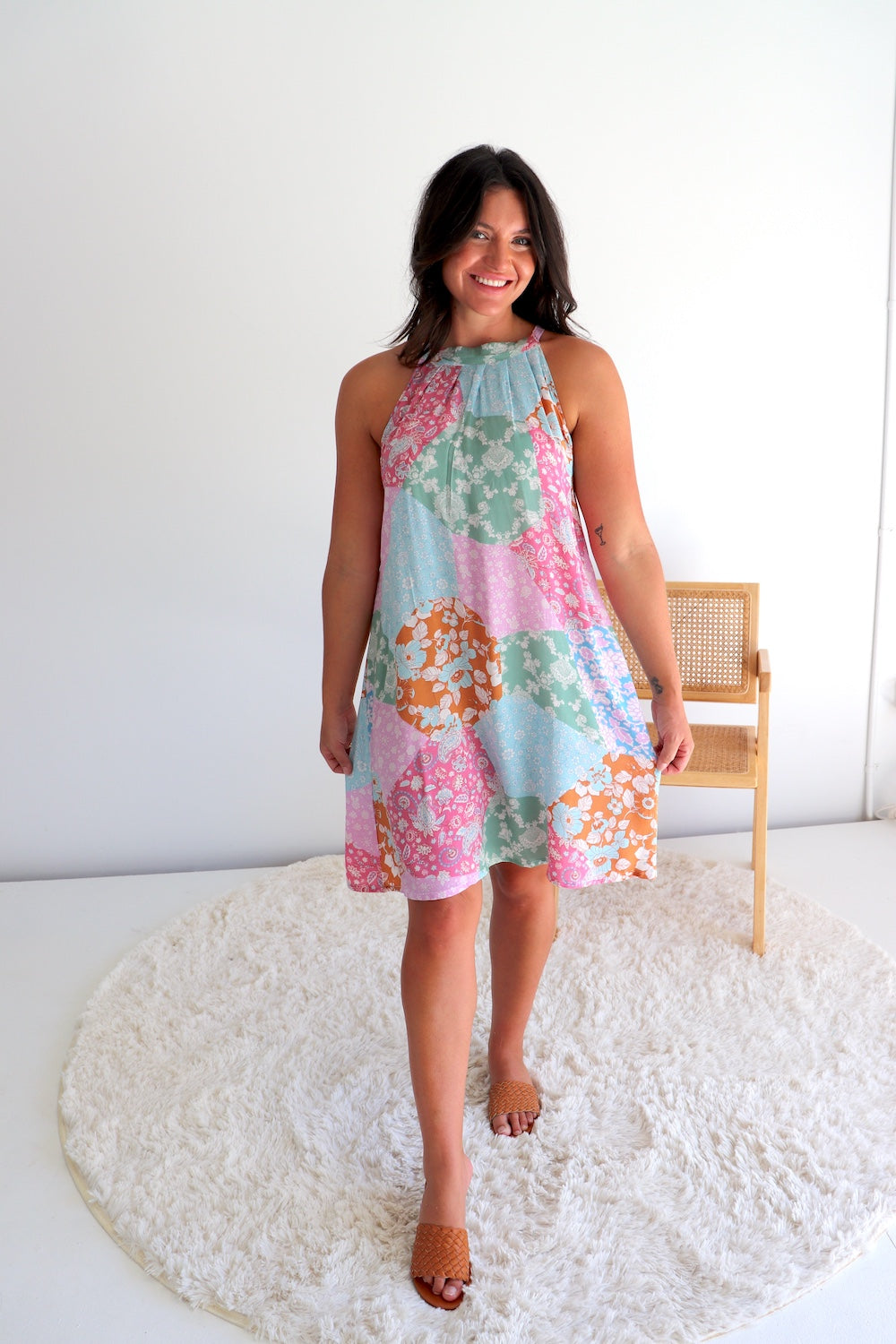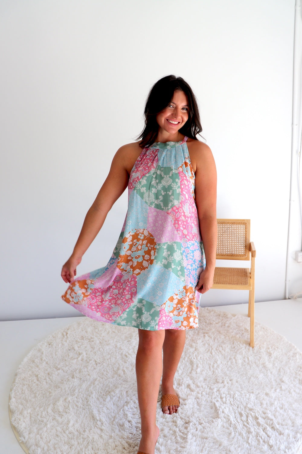 Fresh, fun and made for sunshine, this little summer dress is the effortless piece your wardrobe needs. Designed in one easy size to suit 10–16, it features a flattering tie up halter neckline and a sweet flowing bodice that moves beautifully with you.