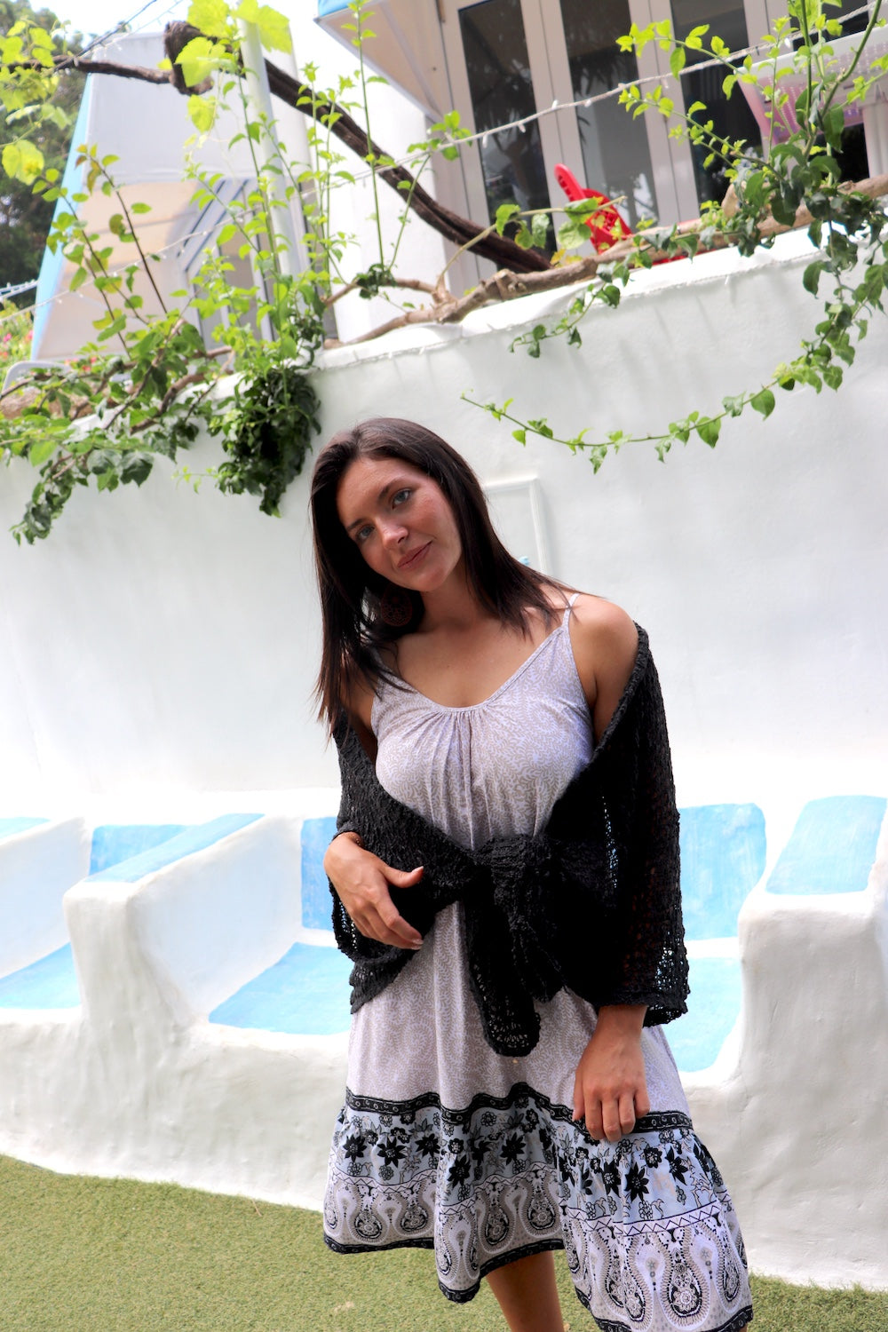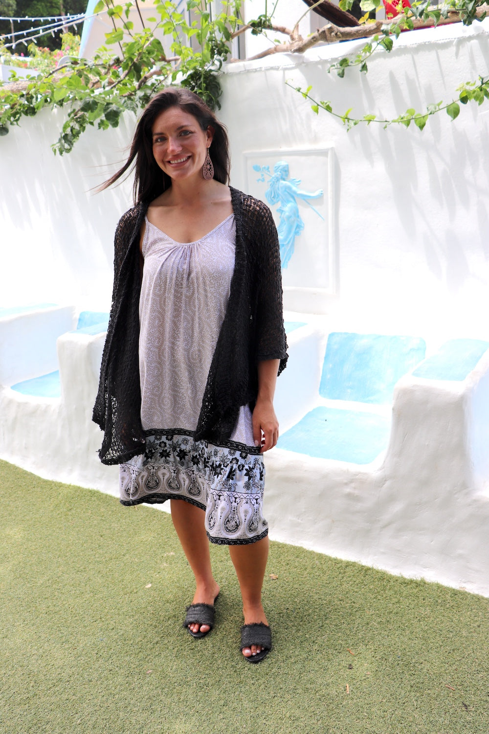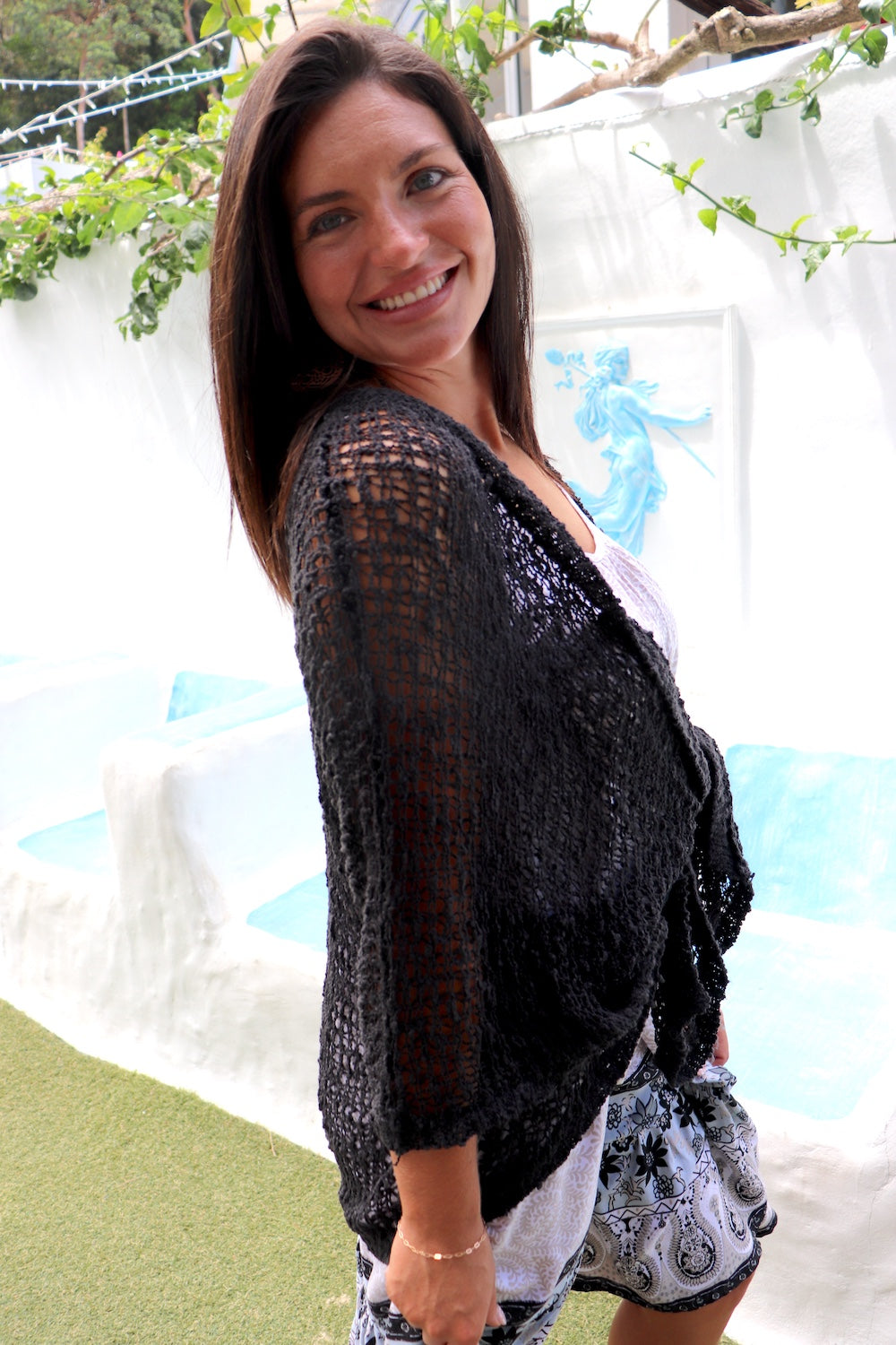 Super light and easy to pop on and off, this versatile knit comes in three beautiful colours and is designed in a one size fit that suits sizes 8–26. The soft acrylic knit drapes beautifully and stretches to move with your body.
