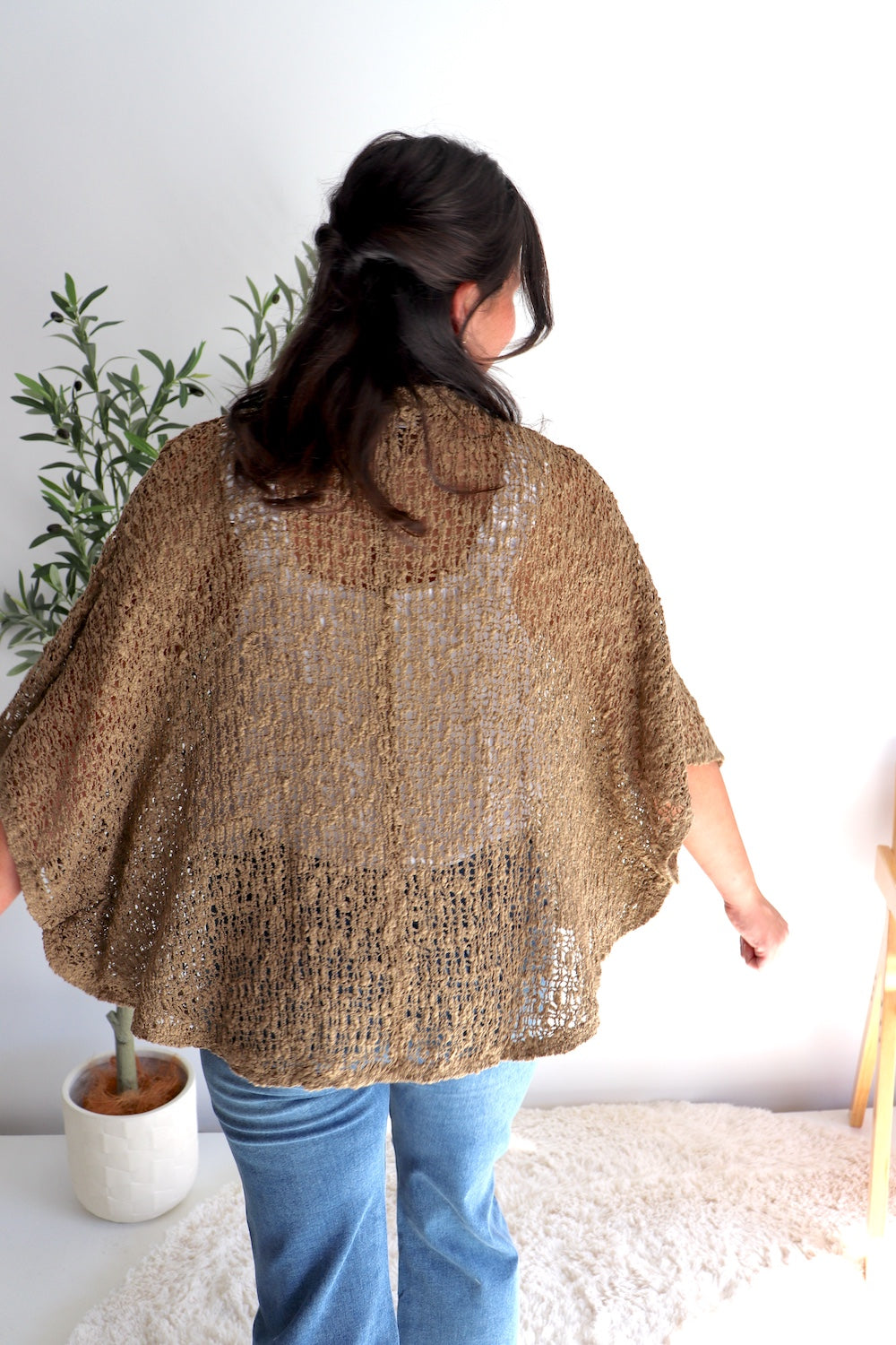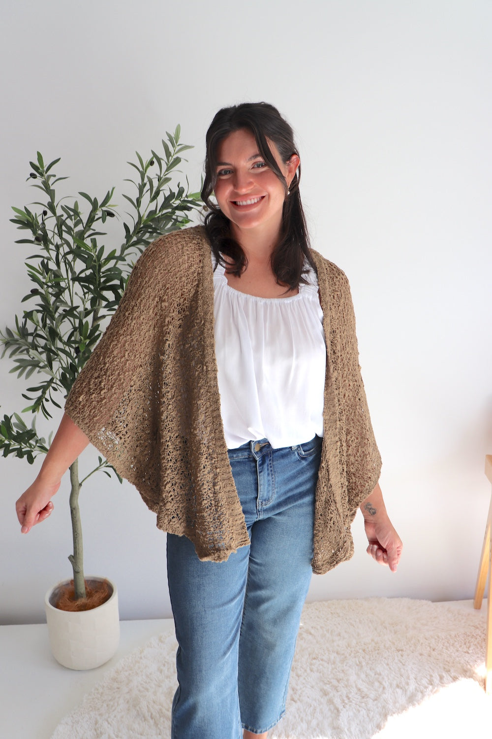 Super light and easy to pop on and off, this versatile knit comes in 3 beautiful colours and is designed in a one size fit that suits sizes 8–26. The soft acrylic knit drapes beautifully and stretches to move with your body.